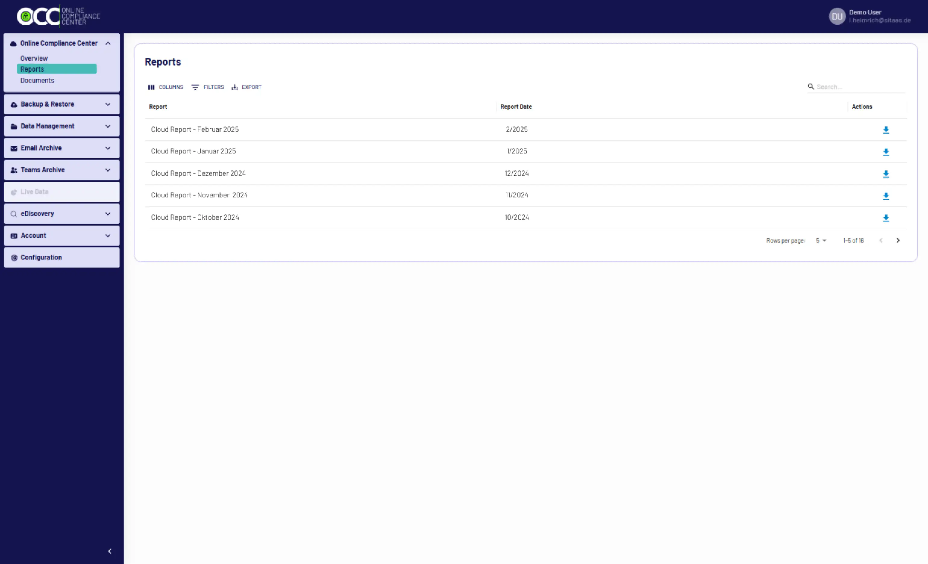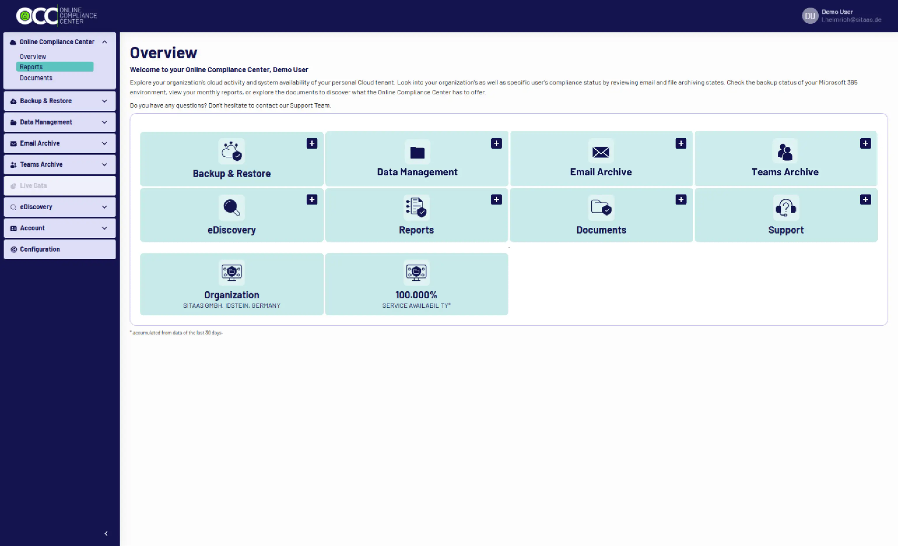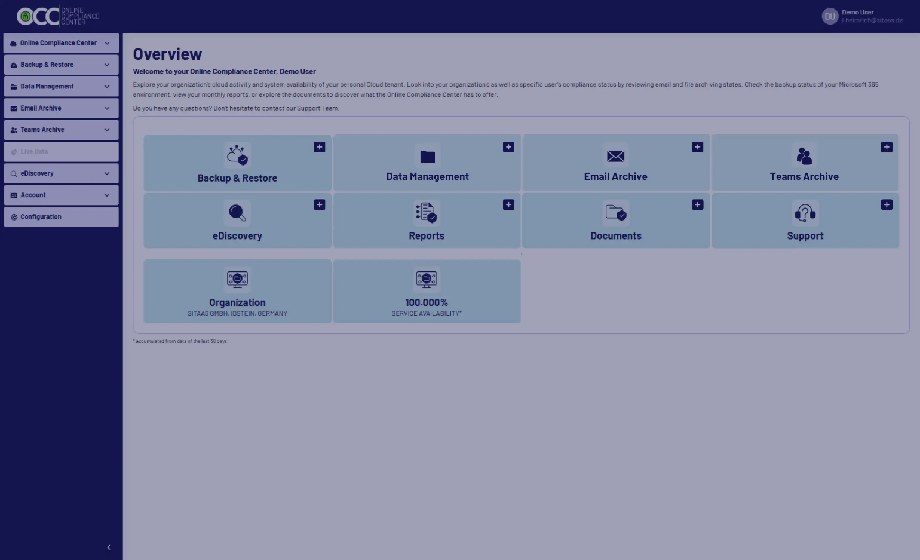 Erhalten Sie Einblicke in das Online Compliance Center sowie eine Übersicht zu Ihrer Systemverfügbarkeit.