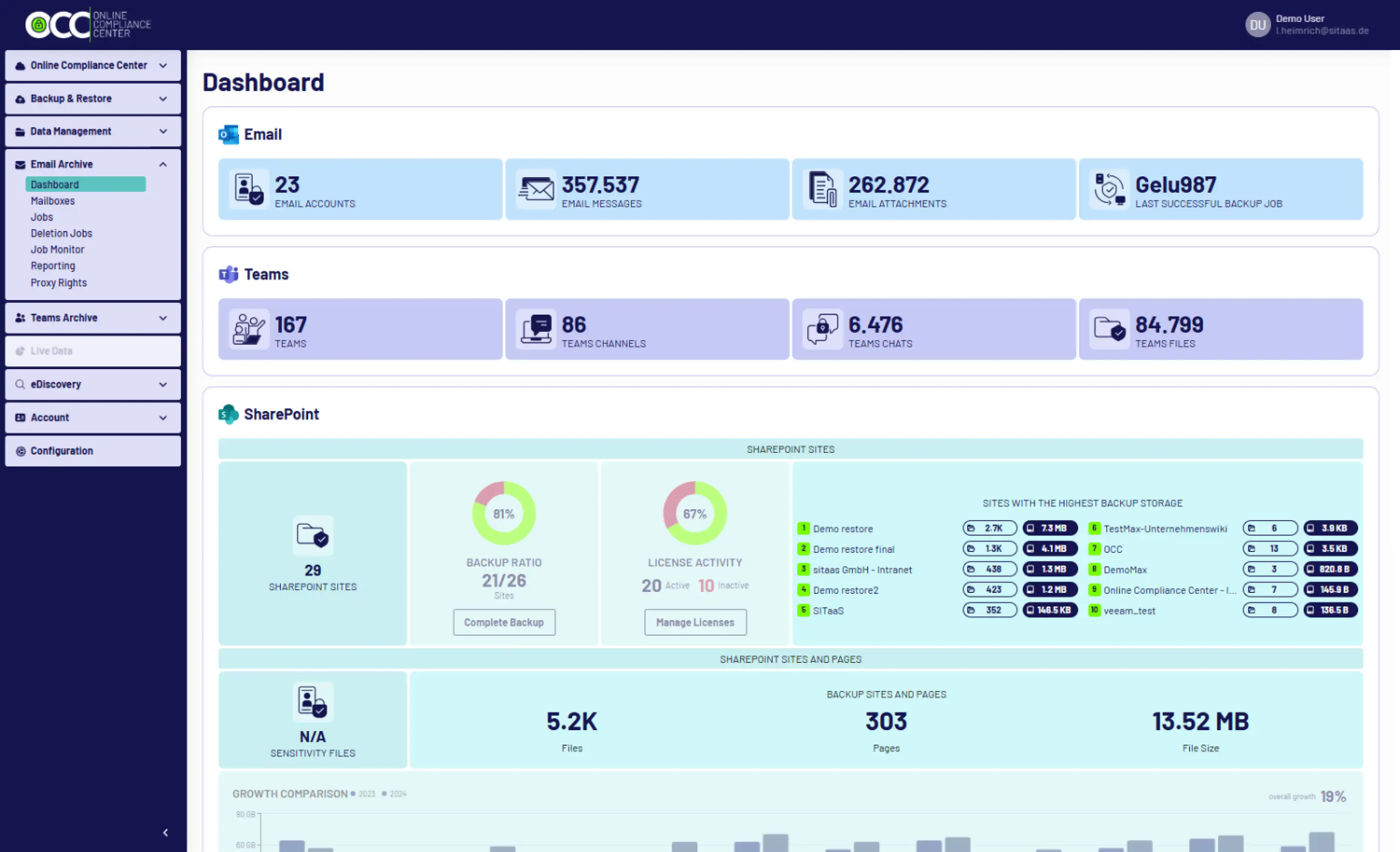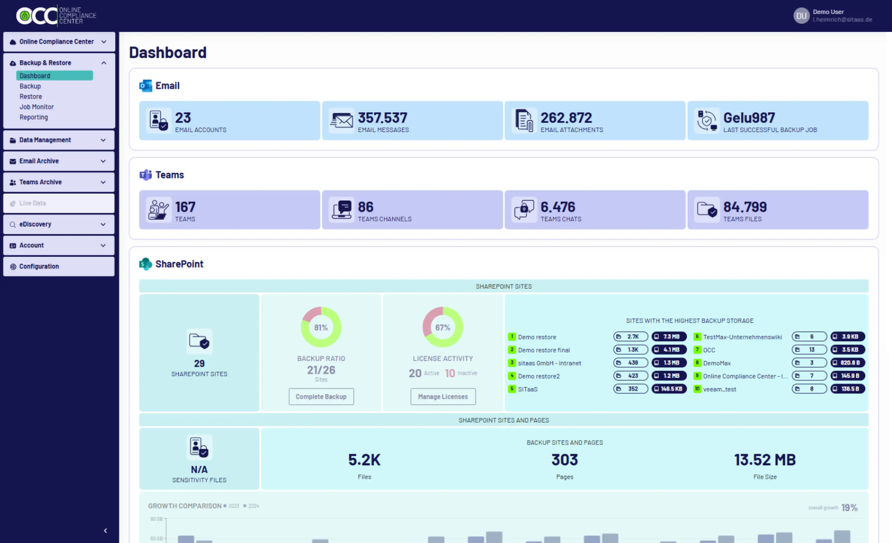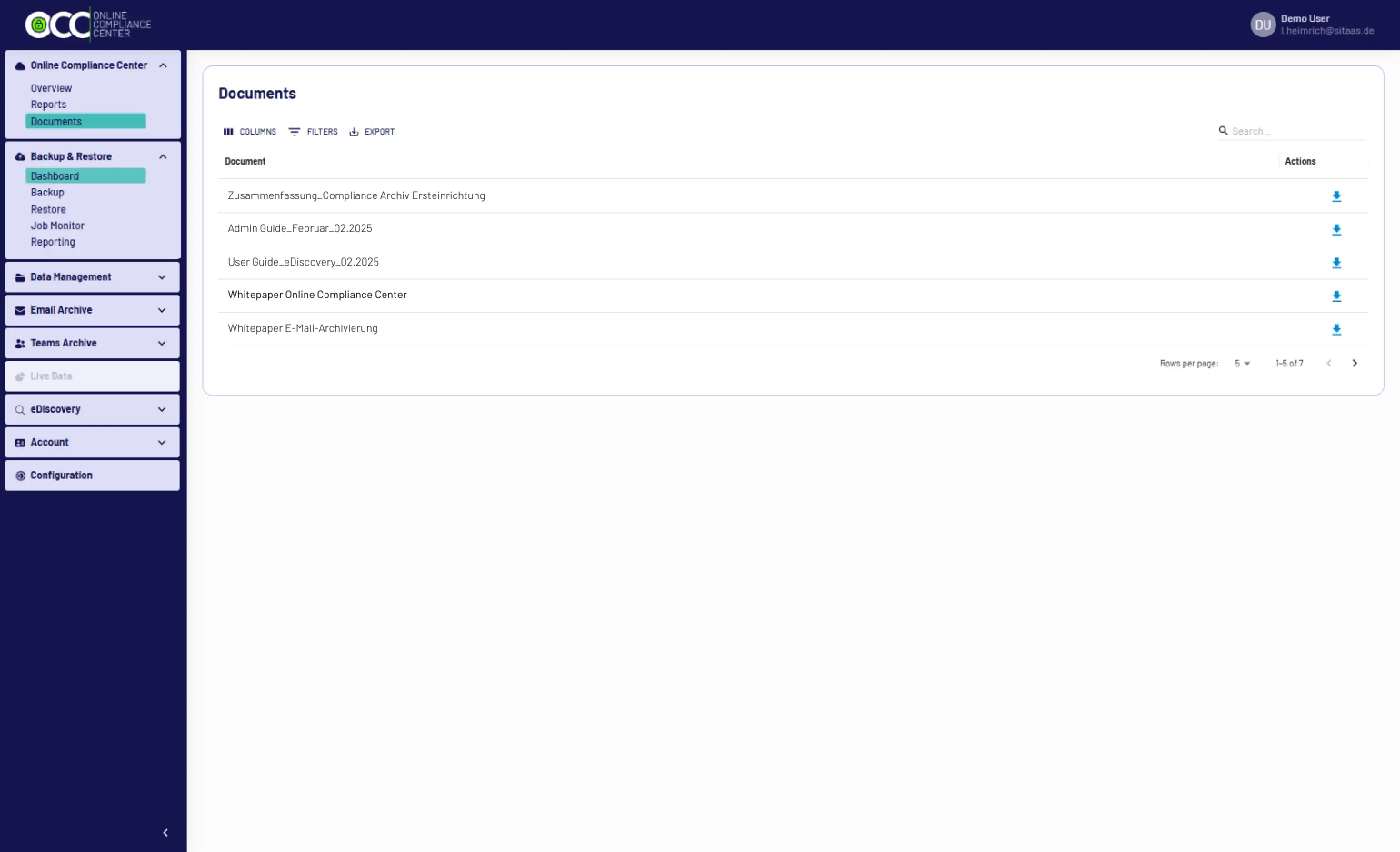 Bei der geführten Tour stellen wir Ihnen die wichtigsten Funktionen und die Dashboards der Module „Backup & Restore“ sowie „Compliance Archiv“ vor.